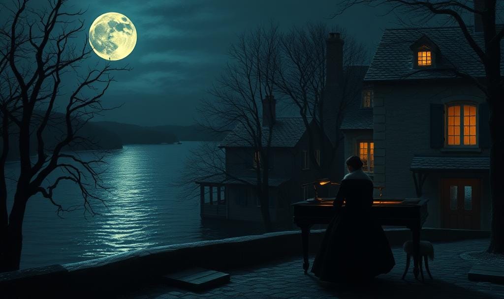 Inside, I placed a record on the player. The opening notes of Moonlight Sonata filled the air — slow, solemn, beautiful. I poured myself a glass of wine, the dark liquid catching the lamplight as I raised it to my lips.